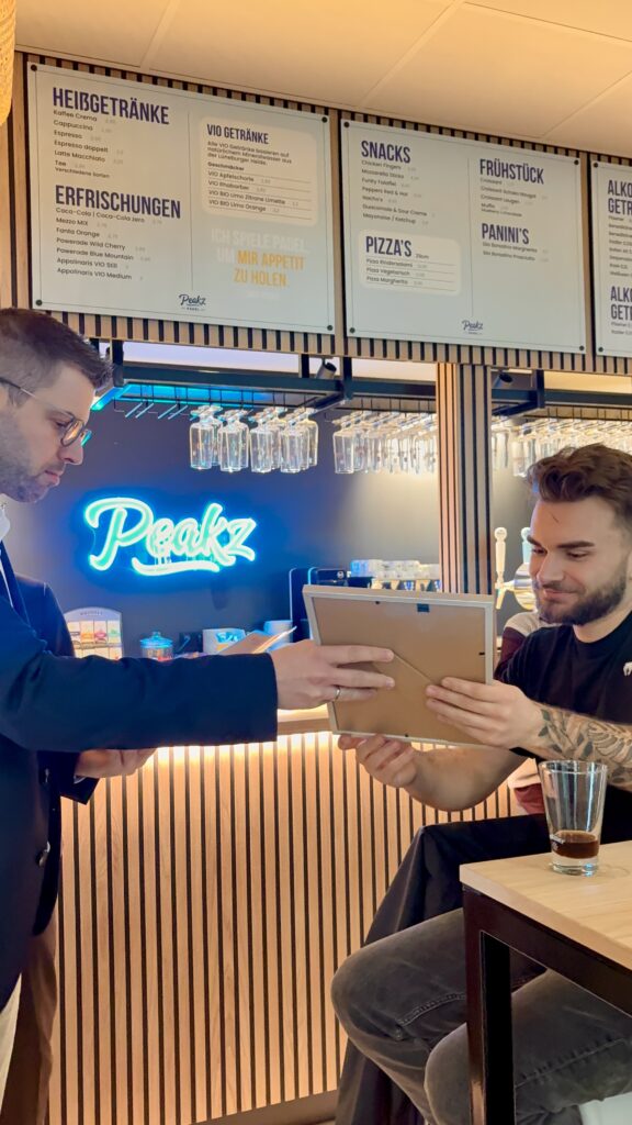 Bei der Siegerehrung in der Padel-Halle „Peakz“ nahmen die strahlenden Gewinner ihre Urkunden, die gerahmte Platz-1-Auszeichnung und einen Gutschein über 500 Euro entgegen. Die Sparkasse an Volme und Ruhr überreichte die Preise persönlich – ein würdiger Rahmen für eine außergewöhnliche Leistung. Da wir als Schule gerne Anteil an diesem schönen Ereignis nehmen wollten, wurde unser Siegerteam von unserer Kollegin Sirivan Shamo begleitet, die die Studenten im Fach Betriebliches Management unterrichtet.